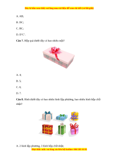 Đây là bản xem th , vu ử i lòng mua tài li u ệ đ xe ể m chi ti t ế (có l i ờ gi i ả ) A. AB; B. DC; C. BC; D. D’C’. Câu 7. H p quà d ộ ư i ớ đây có bao nhiêu m t ặ ? A. 4; B. 5; C. 6; D. 7. Câu 8. Hình dư i