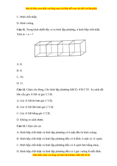 D. Có 3 góc vuông ở mỗi đ nh c ỉ a hì ủ nh h p ộ ch nh ữ t ậ ABCD.A’B’C’D’.