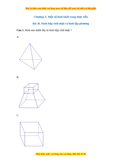 Đây là bản xem th , vu ử i lòng mua tài li u ệ đ xe ể m chi ti t ế (có l i ờ gi i ả ) Chư ng ơ X. M t ộ số hình kh i ố trong th c ự ti n ễ Bài 36. Hình h p ch ộ nh ữ t ậ và hình l p ph ậ ư ng ơ