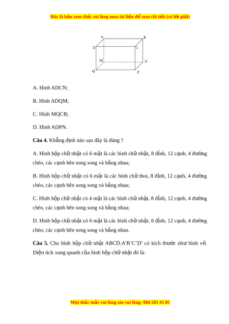 Đây là bản xem th , vu ử i lòng mua tài li u ệ đ xe ể m chi ti t ế (có l i ờ gi i ả ) A. Hình ADCN; B. Hình ADQM; C. Hình MQCB; D. Hình ADPN. Câu 4. Kh ng đ ẳ