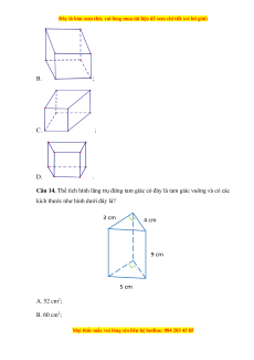 Câu 14. Thể tích hình lăng trụ đứng tam giác có đáy là tam giác vuông và có các