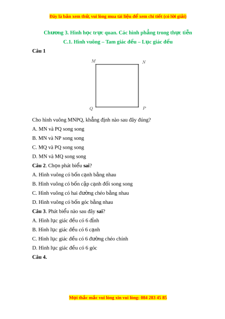C.1. Hình vuông – Tam giác đ u – L ề c ụ giác đ u ề Câu 1