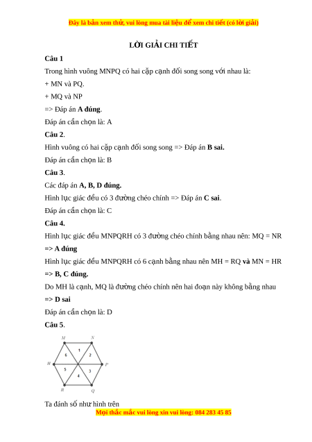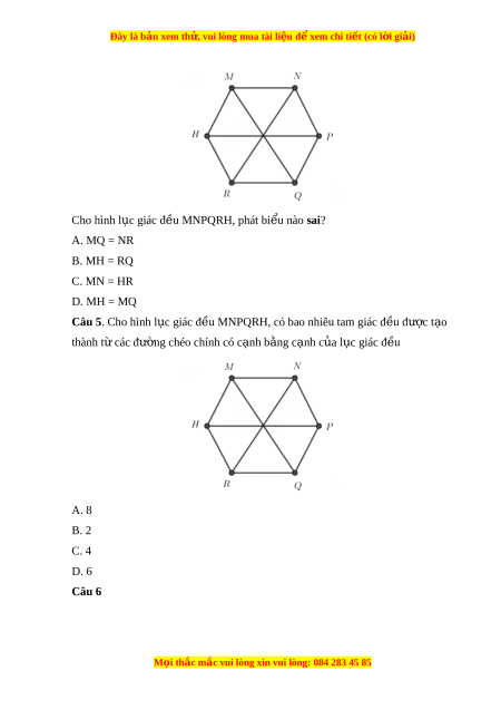 Đây là bản xem th , vu ử i lòng mua tài li u ệ đ xe ể m chi ti t ế (có l i ờ gi i ả ) Cho hình l c gi ụ ác đ u M ề NPQRH, phát bi u nào ể sai? A. MQ = NR B. MH = RQ C. MN = HR D. MH = MQ