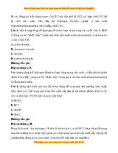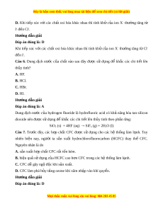 ấ hydrochlorofluorocarbon (HCFC) thay thế CFC. Nguyên nhân là do A. s n xu ả ất h p ch ợ ất CFC r t ấ t n kém ố . B. hiệu qu s ả ử d ng c ụ a H ủ CFC cao h n ơ CFC trong các h t ệ h ng l ố àm l nh. ạ C. CFC d gây ng ễ ộ đ c khi ộ s n ả xu t ấ . D. CFC làm phá h y t ủ ng ozone khi ầ xâm nh p ậ vào khí quy n. ể Hư ng d ớ ẫn gi i ả Đáp án đúng là: D M i ọ thắc m c