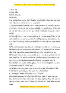 Câu 9: Virus cố đ nh ị trên bê m t ă tế bao chủ nhờ m i ố liên k t ế đ c ă hi u ệ gi a ữ thụ thê c a ủ virus va thụ thê c a