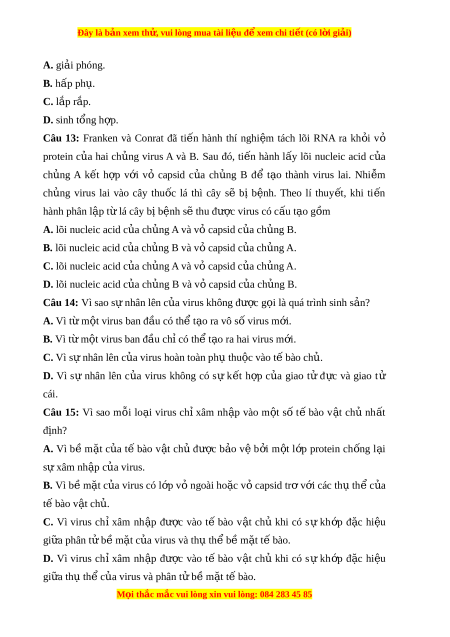 Đây là bản xem th , vu ử i lòng mua tài li u ệ đ xe ể m chi ti t ế (có l i ờ gi i ả ) A. Hấp ph . ụ B. Xâm nh p. ậ C. Sinh tổng h p. ợ D. L p r ắ ap. Câu 10: Phat bi u