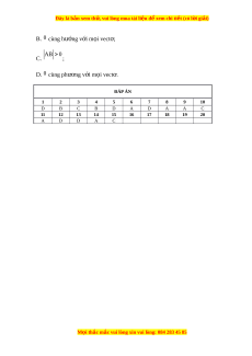 Câu 14. Mệnh đ nào s ề au đây là đúng? A. Có duy nh t ấ m t ộ vect cùng ph ơ ư ng ơ v i ớ m i ọ vect ; ơ B. Có ít nh t ấ hai vect cùng ph ơ ư ng ơ v i ớ m i ọ vect ; ơ