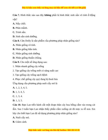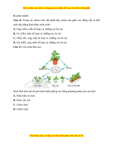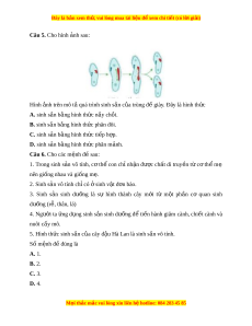 ứ nào sau đây không ph i ả là hình th c ứ sinh s n ả vô tính ở đ ng ộ v t ậ ? A. N y ả chồi. B. Phân m nh ả . C. Trinh s n. ả D. Sinh s n s ả inh dư ng. ỡ Câu 8. C u ừ Dolly là s n ả ph m ẩ c a ph ủ ư ng pháp ơ nhân gi ng nào? ố