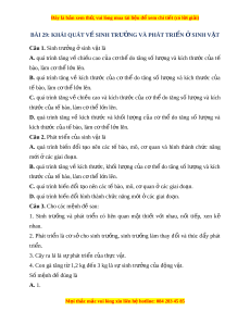ủ cơ thể do tăng số lư ng ợ và kích thư c ớ c a t ủ bào, ế làm c t ơ h l ể n l ớ ên. Câu 2. Phát tri n c ể a s ủ inh v t ậ là A. quá trình bi n ế đ i ổ t o