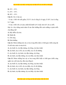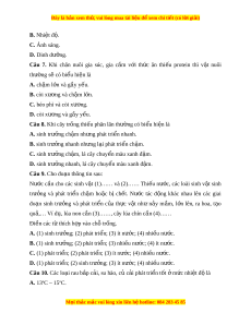 ầ 3)……, cây lúa chín c n ( ầ 4)…… Đi n các ề t t ừ hích h p vào ch ợ t ỗ r ng. ố A. (1) sinh trư ng; ở (2) phát tri n; ể (3) ít nư c; ớ (4) nhi u n ề ư c. ớ B. (1) sinh trư ng; ở (2) phát tri n; ể (3) nhi u n ề ư c; ớ (4) ít nư c. ớ C. (1) phát tri n; ể (2) phát tri n; ể (3) ít nư c; ớ (4) nhi u ề nư c. ớ D. (1) phát tri n; ể (2) sinh trư ng; ở (3) ít nư c; ớ (4) nhi u n ề ư c. ớ Câu 10. Các lo i ạ rau b p ắ c i ả , su hào, c c ủ i ả phát tri n t ể t ố m ở c nhi ứ t ệ đ l ộ à A. 13oC – 15oC. M i