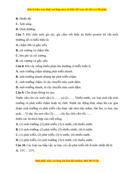 Đây là bản xem th , vu ử i lòng mua tài li u ệ đ xe ể m chi ti t (c ế ó l i ờ gi i ả ) B. Nhi t ệ đ . ộ C. Ánh sáng. D. Dinh dư ng. ỡ