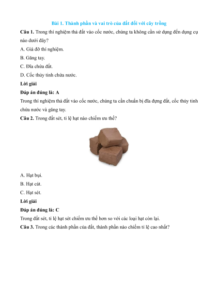 Bài 1. Thành phần và vai trò của đất đối với cây trồng