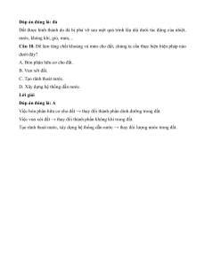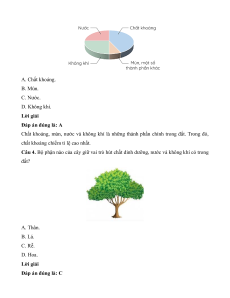 Câu 3. Trong các thành phần của đất, thành phần nào chiếm tỉ lệ cao nhất? A. Chất khoáng. B. Mùn. C. Nước. D. Không khí. Lời giải