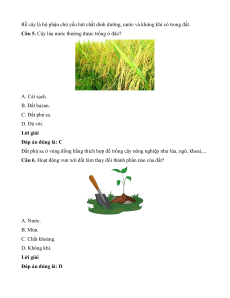 Câu 5. Cây lúa nước thường được trồng ở đâu? A. Cát sạch. B. Đất bazan. C. Đất phù sa. D. Đá vôi. Lời giải