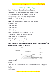 D. Cả ba đáp án trên đ u đúng ề Câu 2: Hi n nay ệ , trên th gi ế i ớ đã phát hi n đ ệ ư c ợ kho ng: ả A. 3000 lo i ạ virus B. 4000 lo i ạ virus C. 5000 lo i ạ virus D. 600 lo i ạ virus Câu 3: Ứng d ng c ụ a ủ khóa lư ng phân ỡ trong vi c ệ A. S p x ắ p s ế ách v t