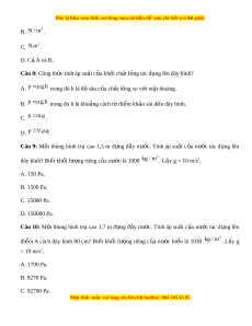 Đây là bản xem th , vu ử i lòng mua tài li u ệ đ xe ể m chi ti t ế (có l i ờ gi i ả ) B. 2 N / m . C. 2 N.m . D. Cả A và B. Câu 8: Công th c t ứ ính áp su t ấ c a ủ kh i ố ch t ấ l ng t ỏ ác d ng ụ lên đáy bình? A. p . g.h trong đó h là đ s ộ âu c a ch ủ t ấ l ng s ỏ o v i ớ m t ặ thoáng. B. p .