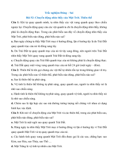 Câu 3: Khi nói về chuyển động của Mặt Trời và các thiên thể, trong các phát biểu sau,
