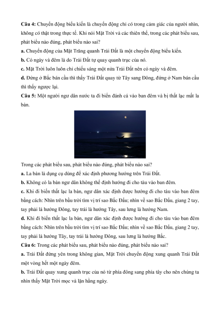 Câu 4: Chuyển động biểu kiến là chuyển động chỉ có trong cảm giác của người nhìn,