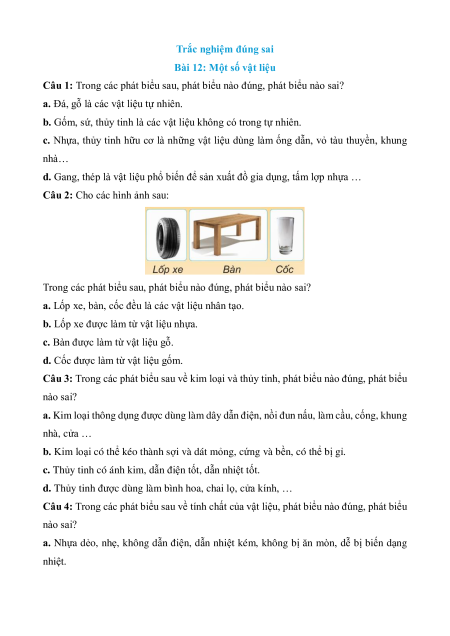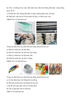 Câu 4: Trong các phát biểu sau về tính chất của vật liệu, phát biểu nào đúng, phát biểu nào sai?