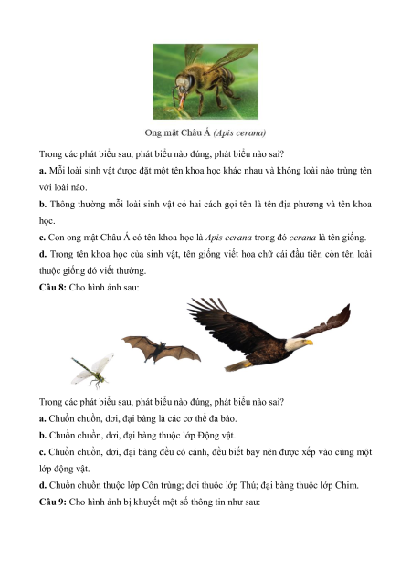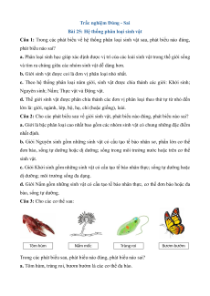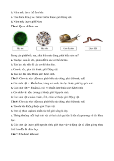 Câu 2: Cho các phát biểu sau về giới sinh vật, phát biểu nào đúng, phát biểu nào sai?