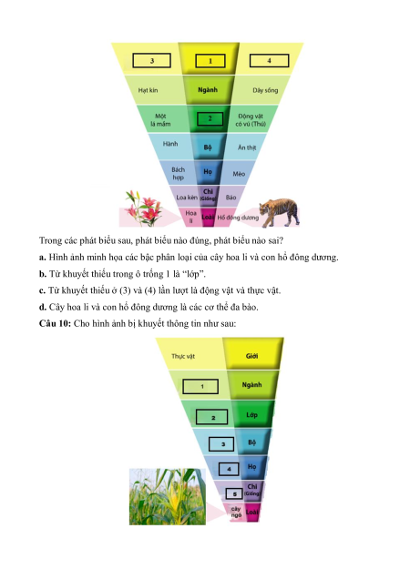 Câu 1: Trong các phát biểu về hệ thống phân loại sinh vật sau, phát biểu nào đúng, phát biểu nào sai?