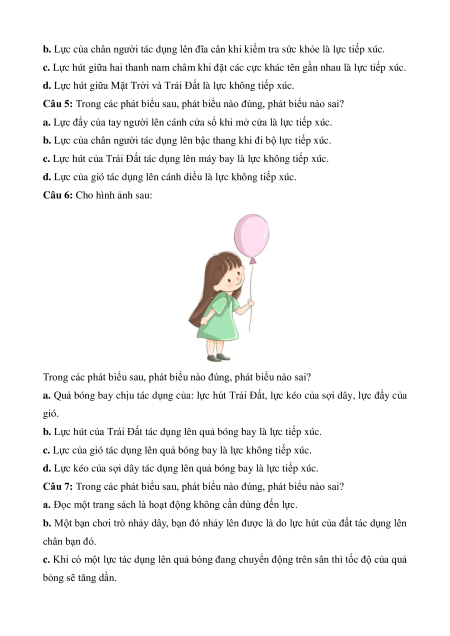 b. Lực hút của Trái Đất tác dụng lên quả bóng bay là lực tiếp xúc.