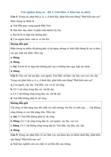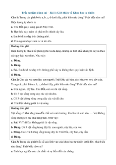 Trắc nghiệm đúng sai – Bài 1: Giới thiệu về Khoa học tự nhiên