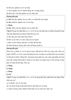 Câu 5: Trong các phát biểu a, b, c, d về vật sống dưới đây, phát biểu nào đúng? Phát biểu nào sai?
