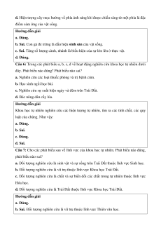 Câu 7: Cho các phát biểu sau về lĩnh vực của khoa học tự nhiên. Phát biểu nào đúng, phát biểu nào sai?