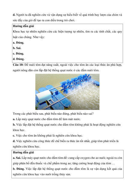 Câu 4: Trong các phát biểu a, b, c, d về vai trò của khoa học tự nhiên trong đời sống