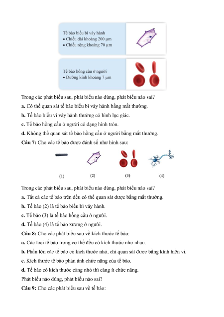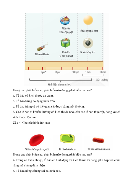 Câu 8: Cho các phát biểu sau về kích thước tế bào: