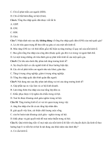 Câu 13. Yếu tố nào sau đây phản ánh sự phát triển kinh tế của một quốc gia? A. Tiến bộ xã hội. B. Tăng quy mô dân số.