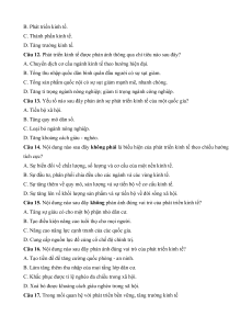 Câu 11. Quá trình tăng tiến về mọi mặt của nền kinh tế đi liền với chuyển dịch cấu kinh tế theo