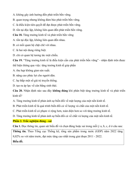 Câu 18. Tăng trưởng kinh tế và phát triển bền vững