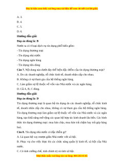 Đây là bản xem th , vu ử i lòng mua tài li u ệ đ xe ể m chi ti t (c ế ó l i ờ gi i ả ) D. C ả A, B, C đ u ề đúng. Hư ng d ớ ẫn gi i ả Đáp án đúng là: D Tín d ng ụ nhà nư c: ớ là quan h ệ vay mư n ợ gi a ữ Nhà nư c ớ v i ớ xã h i ộ đ ể ph c ụ v cho ụ vi c ệ th c ự thi các ch c ứ năng qu n l ả ý kinh t , xã h ế i ộ c a m ủ ình. Tín d ng ụ nhà nư c ớ có tính cư ng ỡ ch ,