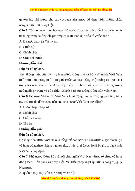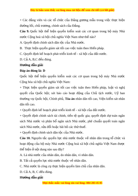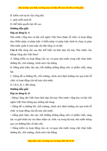 Đây là bản xem th , vu ử i lòng mua tài li u ệ đ xe ể m chi ti t (c ế ó l i ờ gi i ả ) B. ki m ể soát t do c ự a ủ công dân. C. phát tri n ki ể nh t . ế D. th hi ể n quy ệ n l ề c ự t i ố cao. Hư ng d ớ ẫn gi i ả Đáp án đúng là: A Nhà nư c ớ C ng ộ hòa xã h i ộ chủ nghĩa Vi t ệ Nam đư c ợ tổ ch c ứ và ho t ạ đ ng ộ theo Hi n ế pháp và pháp lu t ậ vì Hi n ế pháp và pháp lu t