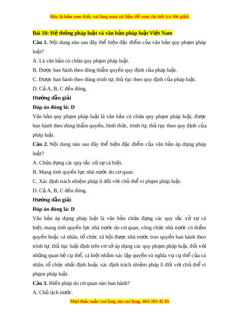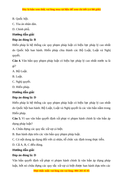 Đây là bản xem th , vu ử i lòng mua tài li u ệ đ xe ể m chi ti t (c ế ó l i ờ gi i ả ) B. Quốc h i ộ . C. Tòa án nhân dân. D. Chính ph . ủ Hư ng d ớ ẫn gi i ả Đáp án đúng là: B Hi n ế pháp là hệ th ng ố các quy ph m ạ pháp lu t ậ có hi u ệ l c ự pháp lý cao nh t ấ do Qu c ố h i ộ ban hành. Hi n