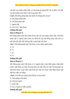 ợ ban hành theo đúng trình t , t ự h t ủ c t ụ heo quy đ nh ị c a pháp l ủ u t ậ . D. Cả A, B, C đ u đúng. ề Hư ng ớ d n gi ẫ i ả Đáp án đúng là: D Văn b n ả quy ph m ạ pháp lu t ậ là văn b n ả có ch a ứ quy ph m ạ pháp lu t ậ , đư c ợ ban hành theo đúng th m ẩ quy n, ề hình th c, ứ trình t , ự th ủ t c ụ theo quy đ nh ị c a ủ pháp lu t ậ . Câu 2. N i