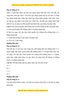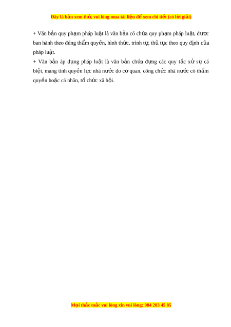 Đây là bản xem th , vu ử i lòng mua tài li u ệ đ xe ể m chi ti t (c ế ó l i ờ gi i ả ) Đáp án đúng là: D Đi u ề 2: Lu t ậ Ban hành văn b n ả quy ph m ạ pháp lu t ậ năm 2015 s a ử đ i ổ , bổ sung năm 2020 quy đ nh: ị “Văn b n ả quy ph m ạ pháp lu t ậ là văn b n ả có ch a ứ quy ph m ạ pháp lu t ậ , đư c ợ ban hành theo đúng th m ẩ quy n, ề hình th c, ứ trình t , ự thủ t c ụ quy đ nh ị trong Lu t ậ này” Như v y ậ , văn b n ả quy ph m ạ pháp lu t ậ ph i