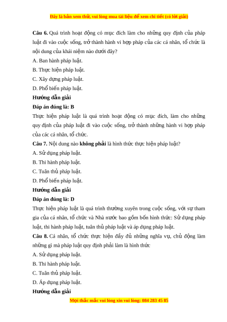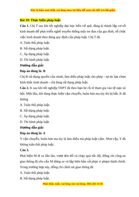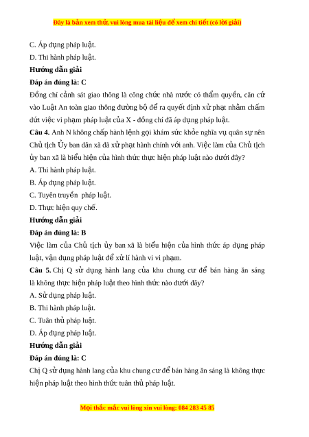 Đây là bản xem th , vu ử i lòng mua tài li u ệ đ xe ể m chi ti t (c ế ó l i ờ gi i ả ) C. Áp d ng pháp l ụ u t ậ . D. Thi hành pháp lu t ậ . Hư ng d ớ ẫn gi i ả Đáp án đúng là: C Đồng chí c nh