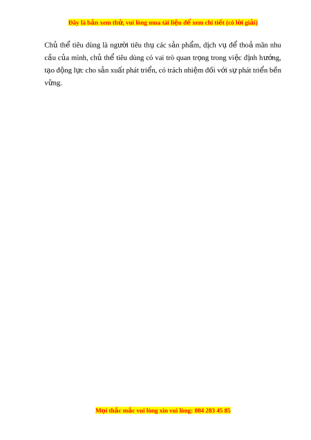 Chủ thể tiêu dùng có vai trò quan tr ng ọ trong vi c ệ đ nh ị hư ng, ớ t o ạ đ ng ộ l c ự cho s n xu ả ất phát tri n, có t ể rách nhi m ệ đ i ố v i ớ s phát ự tri n ể b n v ề ng. ữ Câu 10. Nh ng ữ ngư i ờ tiêu thụ các s n ả ph m ẩ , d ch