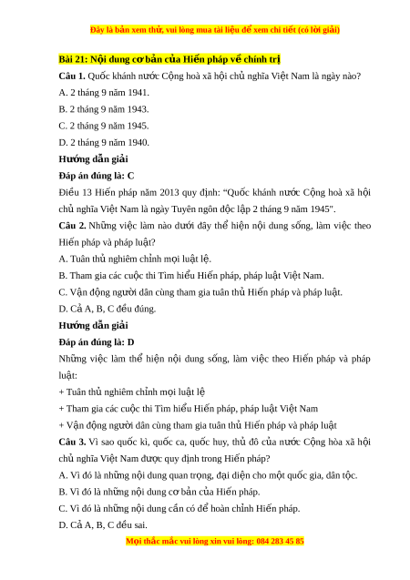 Đây là bản xem th , vu ử i lòng mua tài li u ệ đ xe ể m chi ti t ế (có l i ờ gi i ả ) Bài 21: N i ộ dung c b ơ n c ả a H ủ i n pháp v ế chí ề nh trị