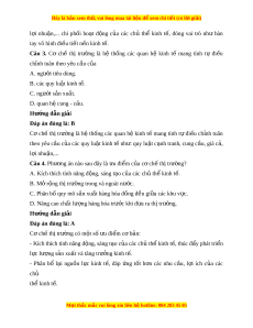 ố các quan hệ kinh tế mang tính tự đi u ề chỉnh tuân theo yêu c u c ầ a ủ A. ngư i ờ tiêu dùng. B. các quy lu t ậ kinh t . ế C. ngư i ờ s n xu ả t ấ . D. quan h cung ệ - c u. ầ Hư ng d ớ ẫn gi i ả Đáp án đúng là: B Cơ chế thị trư ng ờ là hệ th ng ố các quan h ệ kinh t ế mang tính t ự đi u ề ch nh ỉ tuân theo yêu c u ầ c a ủ các quy lu t ậ kinh t nh ế : ư quy lu t ậ c nh ạ tranh, cung c u, ầ giá c , ả l i ợ nhu n,... ậ Câu 4. Phư ng