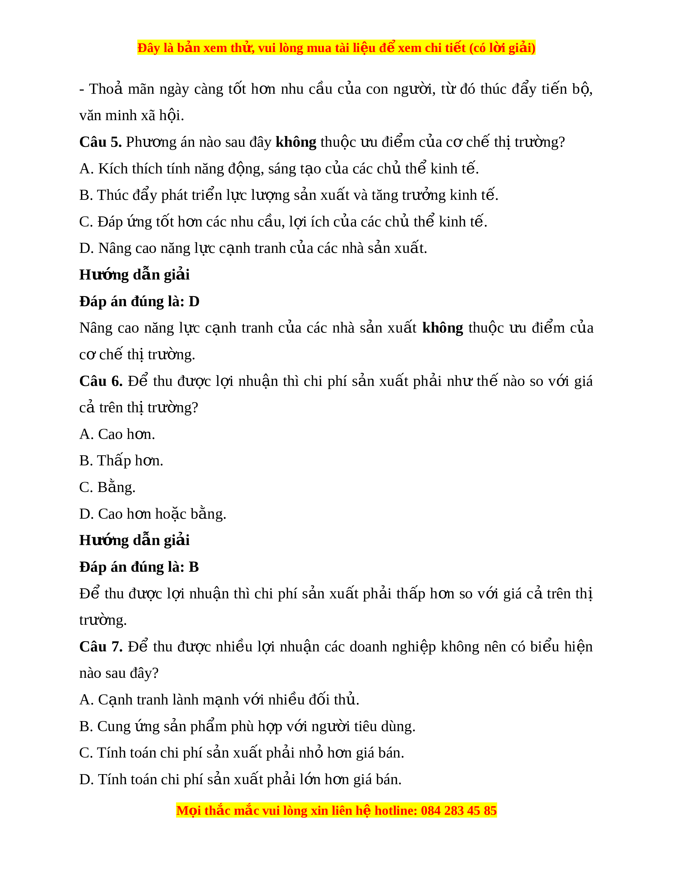 Đây là bản xem th , vu ử i lòng mua tài li u ệ đ xe ể m chi ti t (c ế ó l i ờ gi i ả ) Hư ng d ớ ẫn gi i ả Đáp án đúng là: D Để thu được nhi u ề l i ợ nhu n ậ các doanh nghi p