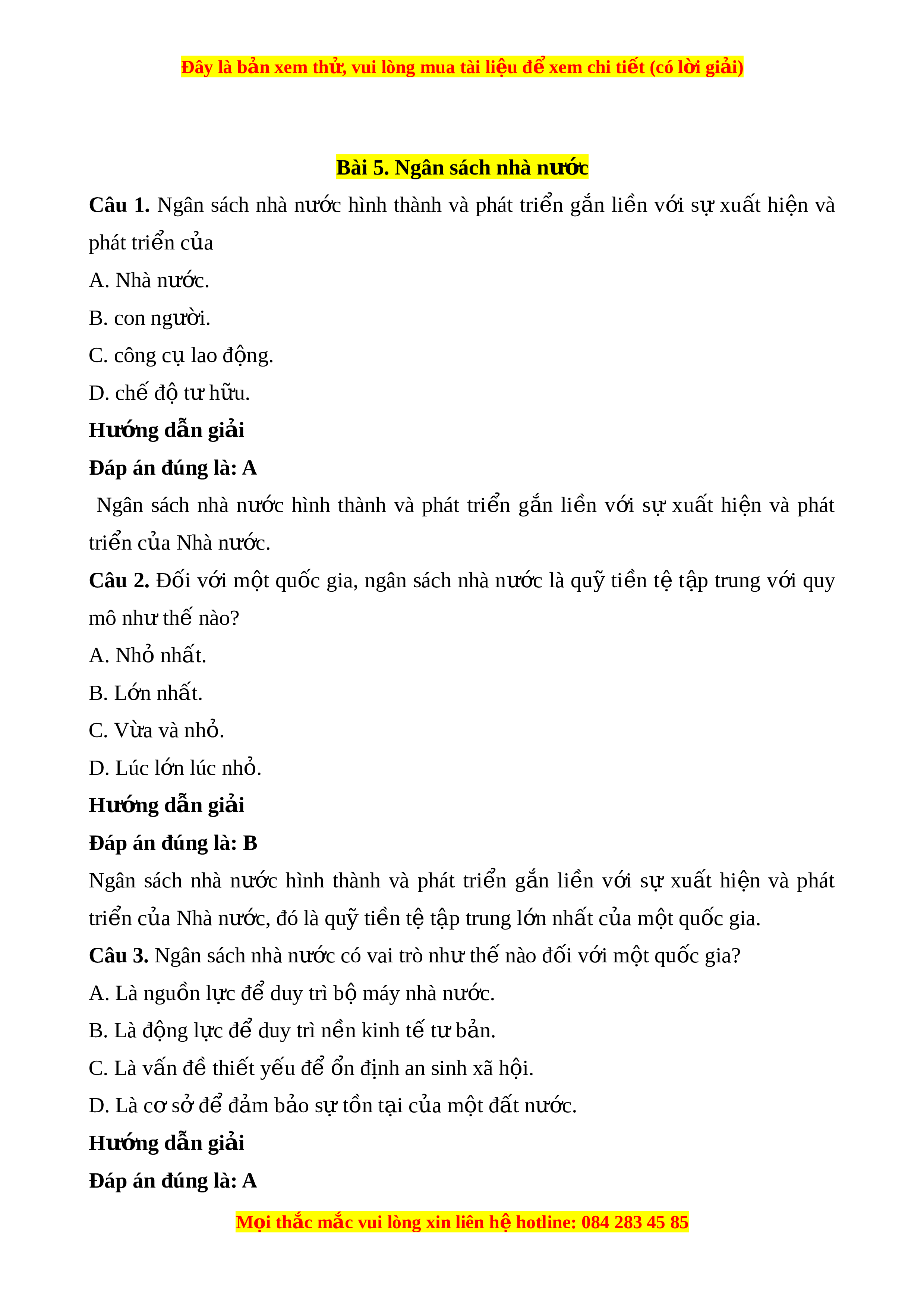 Đây là bản xem th , vu ử i lòng mua tài li u ệ đ xe ể m chi ti t ế (có l i ờ gi i ả ) D. Ngân sách nhà nư c ớ để đ m ả b o ả nhu c u ầ chi tiêu c a ủ m i ọ ngư i ờ dân trong xã h i ộ . Hư ng d ớ ẫn gi i ả Đáp án đúng là: D Vai trò c a ủ ngân sách nhà nư c: ớ