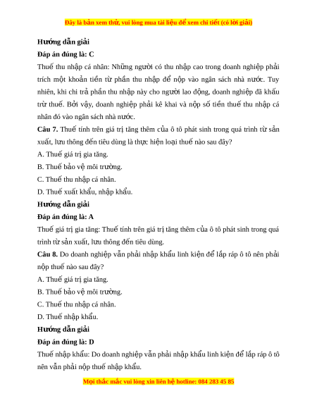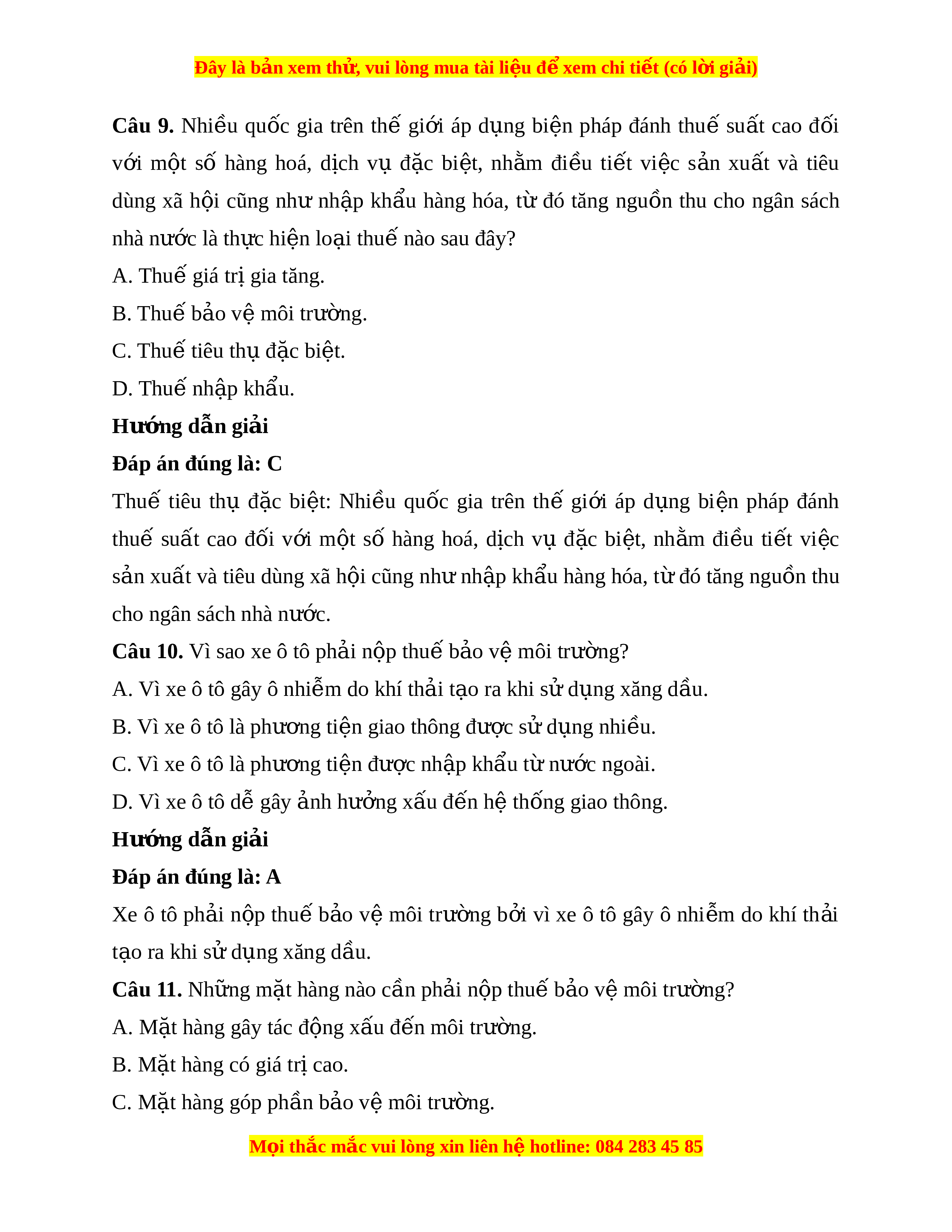 Đây là bản xem th , vu ử i lòng mua tài li u ệ đ xe ể m chi ti t (c ế ó l i ờ gi i ả ) Câu 9. Nhi u ề qu c ố gia trên thế gi i ớ áp d ng ụ bi n ệ pháp đánh thuế su t ấ cao đ i ố v i ớ m t ộ số hàng hoá, d ch ị vụ đ c ặ bi t ệ , nh m ằ đi u ề ti t ế vi c ệ s n ả xu t ấ và tiêu dùng xã h i ộ cũng như nh p ậ kh u