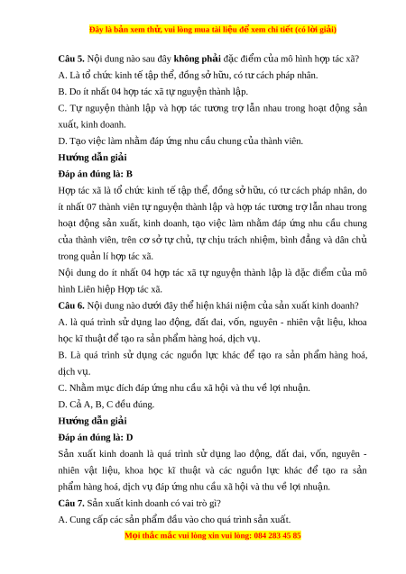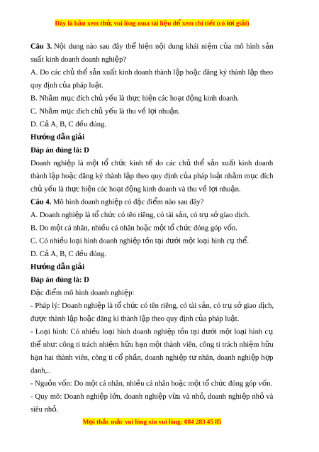 Đây là bản xem th , vu ử i lòng mua tài li u ệ đ xe ể m chi ti t (c ế ó l i ờ gi i ả ) B. Cung c p các ấ hàng hoá ho c ặ d ch v ị ụ cho ngư i ờ tiêu dùng. C. Thúc đ y s ẩ phát ự tri n c ể a n ủ n ề kinh t . ế D. C ả A, B, C đ u ề đúng. Hư ng d ớ ẫn gi i ả Đáp án đúng là: D - Vai trò c a s ủ n xu ả t ấ kinh doanh: + Cung c p các s ấ n ph ả m ẩ đ u vào ầ cho quá trình s n xu ả t ấ + Cung c p các hàng hoá ho ấ ặc d ch v ị cho ng ụ ư i ờ tiêu dùng + Gi i ả quy t ế vi c ệ làm cho ngư i ờ lao đ ng ộ + Thúc đ y s ẩ ự phát tri n c ể a ủ n n ki ề nh tế Câu 8. N i