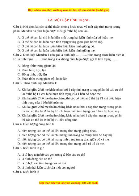 Đây là bản xem thử, vui lòng mua tài liệu để xem chi tiết (có lời giải)