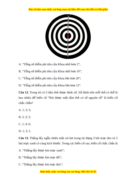 Đây là bản xem th , vu ử i lòng mua tài li u ệ đ xe ể m chi ti t ế (có l i ờ gi i ả ) A. “Tổng số đi m ể phi tiêu c a ủ Khoa nh h ỏ n ơ 2”; B. “Tổng số đi m ể phi tiêu c a K ủ hoa nhỏ h n 10 ơ ”; C. “Tổng số đi m ể phi tiêu c a K ủ hoa l n ớ h n 20 ơ ”; D. “Tổng số đi m ể phi tiêu c a ủ Khoa l n h ớ n 12 ơ ”.
