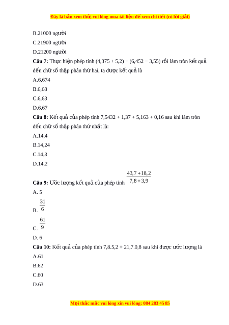 Đây là bản xem th , vu ử i lòng mua tài li u ệ đ xe ể m chi ti t ế (có l i ờ gi i ả ) B.21000 ngư i ờ C.21900 ngư i ờ D.21200 ngư i ờ Câu 7: Th c hi ự n phép t ệ